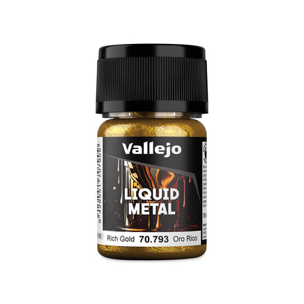 Brilliant metallic colors are manufactured with actual metal pigments in the alcohol-based formula which results in a metallic finish of extraordinary realism and permanence. The colors can be diluted with alcohol, mixed with one another to achieve further variations of tonality, and dry rapidly on all kinds of surfaces. Brushes are cleaned with alcohol or with the Vallejo Brush Cleaner.