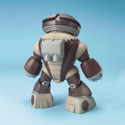 A brand-new MG frame was designed for this unique mobile suit, over which you install the "armor" parts; the joints all feature polycaps and are superbly designed, so that the Acguy can take on just about any pose you've seen it take in the series, including the cute curled-up crouch with its arms around its knees! A one-touch spring switch will release the claws on the right "hand", causing them to pop out quite menacingly! Two sets of "effect parts" are included, too -- one features missiles coming out of the Acguy's left "hand", and the other portrays the aquatic jet streams from the thrusters under the Acguy's feet.