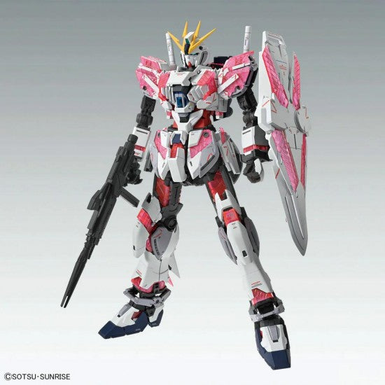 The next new mold in the Master Grade line is here, and it looks awesome! Featuring more clear parts than not (exaggeration but still cool), the Narrative Gundam C-Packs is loaded with gimmicks and detail! You can choose to display the Psycho Frame in active or inactive mode, and the beam rifle can be built in multiple configurations. The hip joints feature enhanced articulation gimmicks for a wide range of motion, and the knees have been enhanced so that you don't have to worry about those Unicorn Ver.Ka pitfalls! The core block / fighter can also be displayed in either mode.