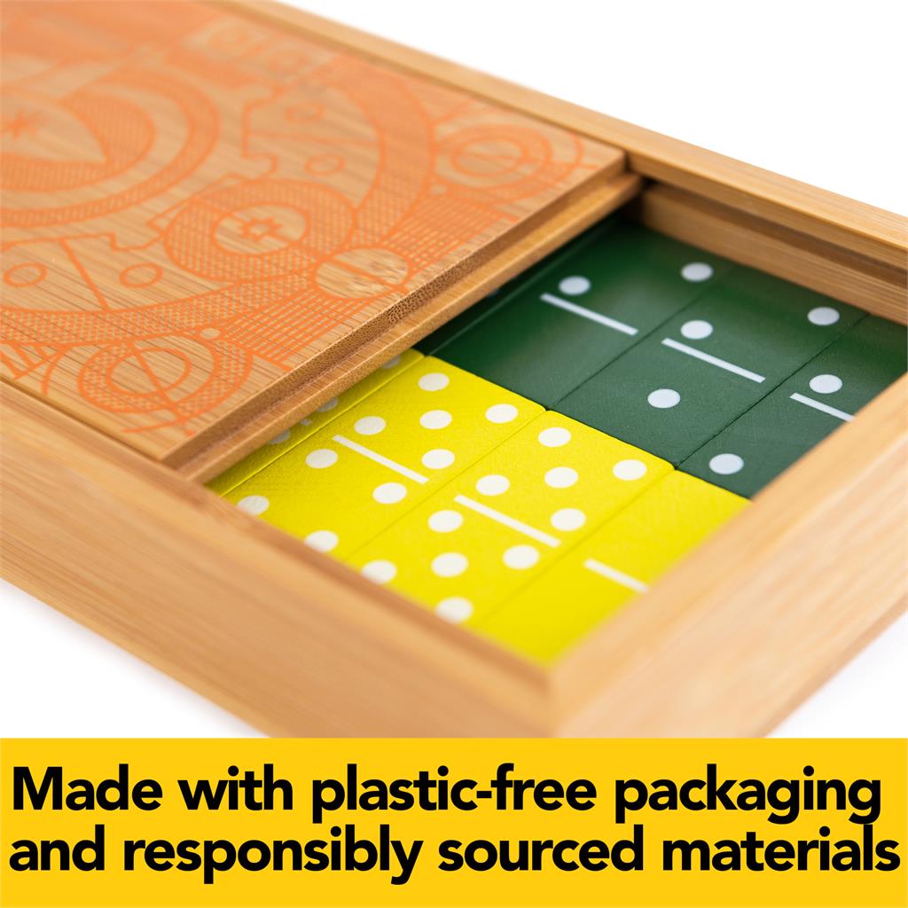Mindful Classics Double-Six Dominoes is the classic game that you need in your games collection. What is even better? This is a sustainable product and eco-friendly gift. Mindful Classics is a collection of family-favorite games featuring thoughtfully designed product and packaging that is 100% FSC certified, with every wood and paper component made from responsibly grown and harvested trees. We also use highly sustainable bamboo, bringing conscious design to the heart of these games for a shared planet.