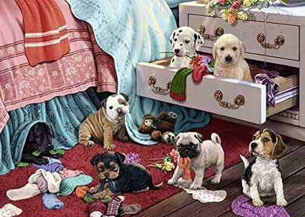 You just can’t get angry at this passel of precocious puppies left to their own devices in our adorable “Mischief Makers” puzzle!