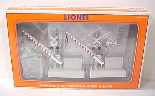 "Mainline Auto Crossing Gate" with red flashing signal and gate that drops when train passes by. Auto Crossing Gate from Lionel¨.Suitable for Ages 8 & Older. It's so great to see your layout really come together and this automatic crossing gate is one of the cherries on that perfectly baked cake.
