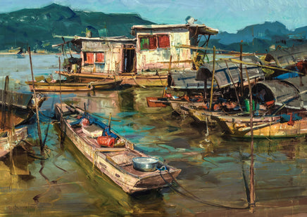 In this tangle of ropes, poles and boats, he portrays an incredible orchestration of beauty and functionality in the Chinese fishermen's lives. Original medium: Oil on panel.Puzzles are designed to display beautifully on a shelf while using minimal space. Exhibit assorted titles like books, showing off the colorful bindings. This particular feature collectors will love!