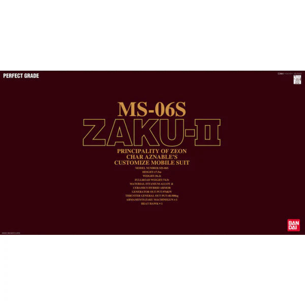 An extremely detailed and highly engineered model kit of Char's Zaku from "Mobile Suit Gundam!" Furnished with an internal skeleton featuring pistons, sensor arrays, molded exhaust piping, as well as LED powered eye (CR1220 battery sold separately), the Zaku embodies the mechanical complexity and attention to detail embodied in the Perfect Grade line. Char's Zaku features different mechanical features from the normal Zaku including larger thruster assemblies. Standards for the Perfect Grade line include fingers that have individual articulation, while actuators move in sync with arm and leg joints. Zaku features many opening hatches and swiveling components as if it were a real machine undergoing maintenance.