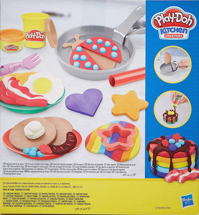 Wake up and go wild with Play-Doh pancakes! Kids can get creative as they use the skillet button to flip their fab food and customize it with crazy cutters. And that's not all: they can make pretend syrup with the electric extruder and share it with the included utensils, plates, and forks. Plus, this set comes with 8 Play-Doh cans (2 oz of tan, 1 oz of red, blue, yellow, white, purple, orange, and brown) for even more arty eats. Get your sizzlin' fun food with Play-Doh Kitchen Creations: Flip 'n Pancakes!