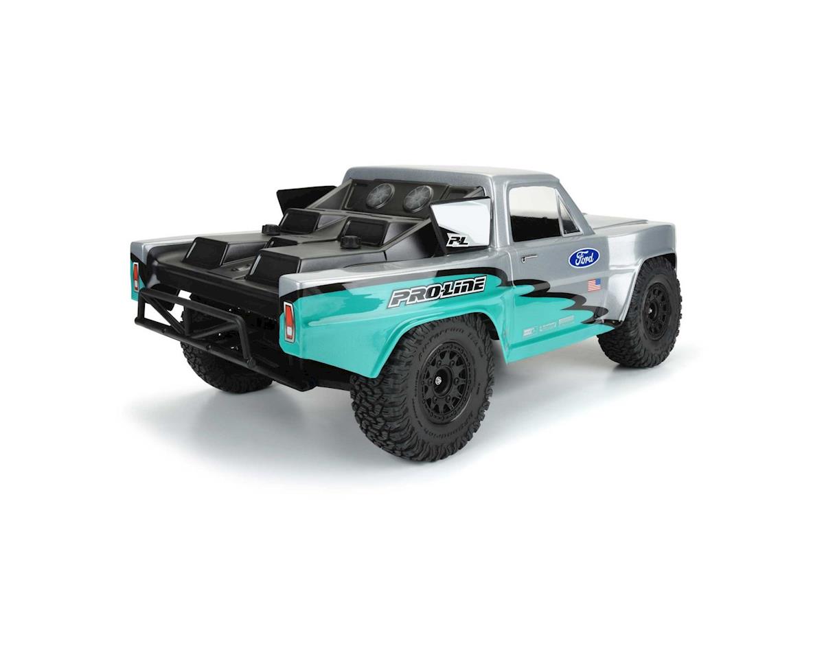 The Pro-Line 1967 Ford F-100 Race Truck Pre-Cut Body allows you to convert your Short Course truck into a fully licensed 1967 Ford F-100 Race Truck! This clear body is pre-cut for easy installation and can be fully customized with whatever paint job you desire. The 1967 Ford body features the iconic flat front F-100 grill and wide fender flares to represent the aggressive fiberglass bulges found on full-size race trucks.