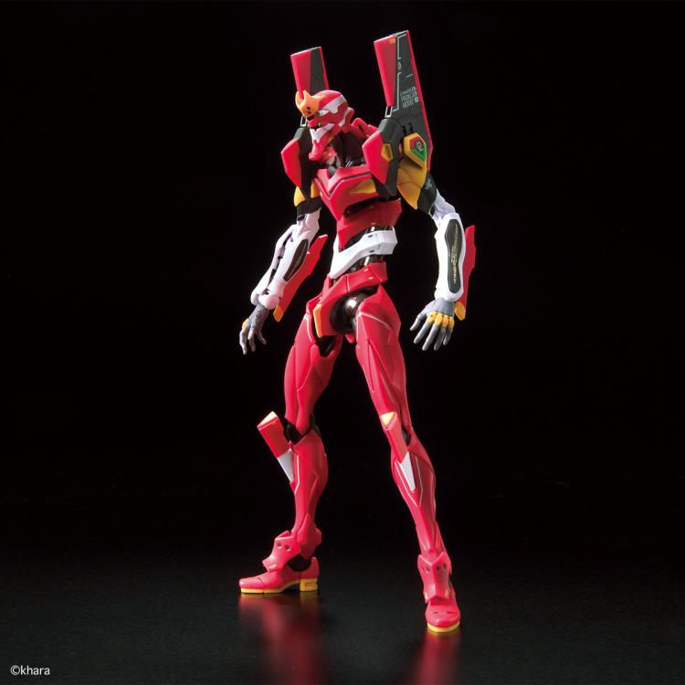 Eva Unit 02 is now available as the third installment of the "RG Evangelion Series" that pursues the reality of an android! A wide range of motion achieved without interference between interlocking armor and parts allows for the reproduction of intense action scenes from the movie. The sinking structure behind the knees reduces interference between armored parts when the legs move. When the legs are opened, internal parts that resemble muscles work together to create a natural standing posture. The head is also divided into small parts, and color reproduction is possible just by assembling it. Eye parts are reproduced in molded color. The progressive knife (for Unit 2) is a new model. Thunder Spear is equipped with a folding gimmick. Hand parts for exclusive use of weapons are included.
