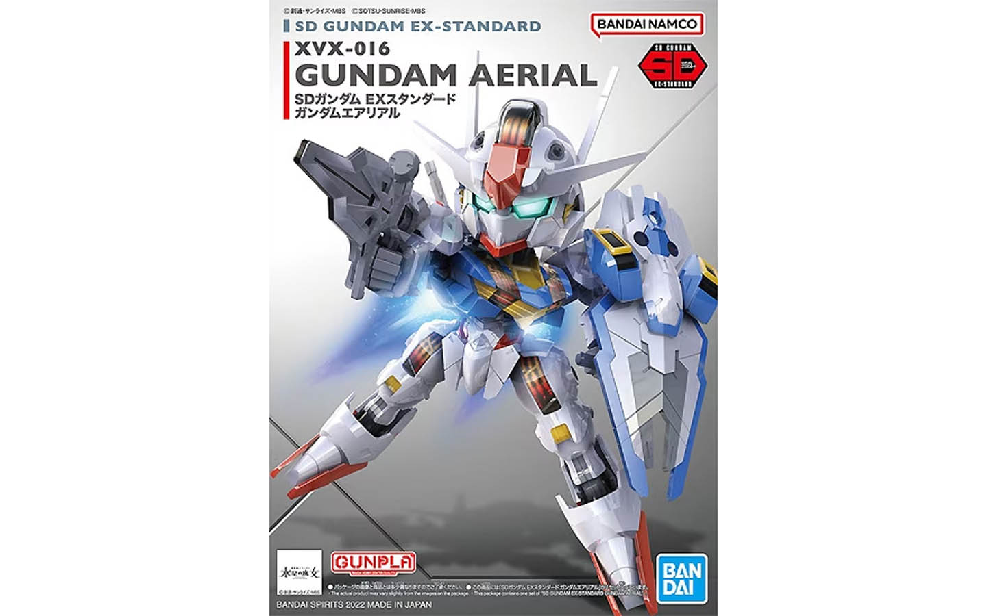 From the latest Gundam series "Mobile Suit Gundam Witch of Mercury", the main character Gundam Aerial is three-dimensionalized in the SDEX standard series! Design arrangement unique to SD Gundam EX Standard. Ensure a movable range that realizes bold action poses. Stylishly expresses the density of details and modeling. Beam rifle, beam saber and shield are included. Rifle can be attached to the back. The shield can be separated and connected to the main body shoulder.