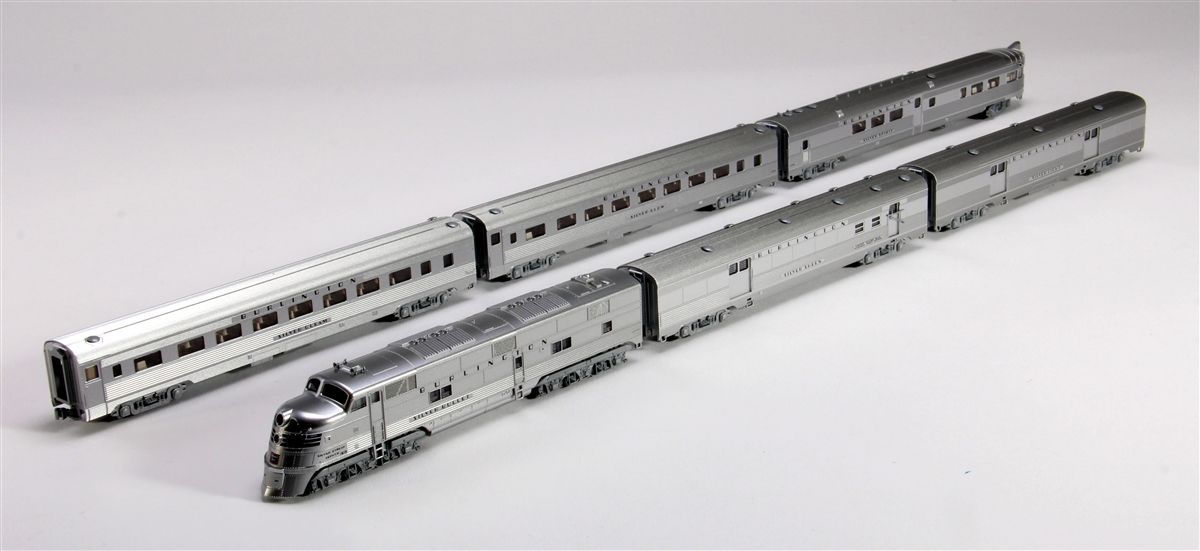 Complete train in one package includes E5A locomotive, 5 beautifully detailed and painted Budd corrugated passenger cars, Unitrack oval and Kato power pack.