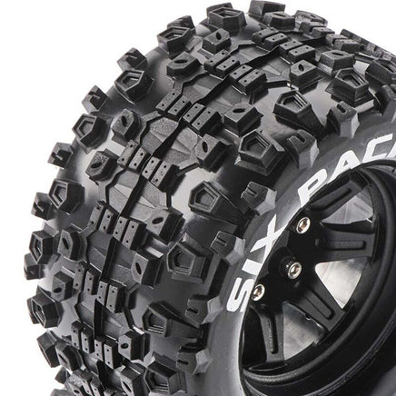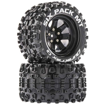 This is a Duratrax C5256 Black 14mm Hex Six Pack MT 2.8 Mounted Tires (Pack of 2).