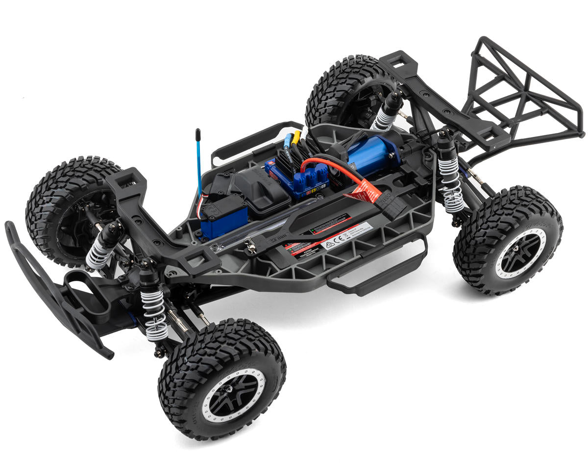 The Traxxas Slash 4x4 VXL Brushless RTR 4WD Short Course Truck embodies the pinnacle of performance and durability in the 1/10 scale short course truck segment. At its core lies a modular composite frame, engineered for ruggedness and versatility. The chassis design facilitates quick and easy servicing, thanks to the innovative modular construction that allows the front and rear sections to be removed with just a handful of screws. This not only streamlines maintenance but also ensures minimal downtime, keeping the truck ready for action at all times. Additionally, the clipless body mounting system simplifies body removal and battery access, enhancing user convenience during setup and operation.