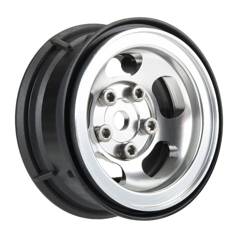 This is a pair of Slot Mag 1.55" Aluminum Composite Internal Bead-Loc 12mm Wheels. Pro-Line is proud to introduce our Slot Mag 1.55" Aluminum Composite Internal Bead-Loc 12mm Wheels! These Slot Mag wheels are designed to not only look super scale but also to be extremely easy to use by only requiring 5 screws per wheel for mounting tires. The unique 3-piece wheel design bolts together in the back and locks on to Pro-Line's 1.55" Crawling Tires or any other 1.55" Crawling tire. The Slot Mag 1.55" features a machined aluminum wheel face with 5 oval-shaped holes that mimic the style of the popular full-size Slot Mag wheels that have been around since the 1960s. This wheel has a 12mm hex machined into the back of the wheel face and is designed to fit all popular straight axle rock crawlers on the market. These Slot Mag wheels are destined to become the new standard in 1.55" crawler wheels. Get your very own set of Pro-Line Slot Mag 1.55" Wheels today!