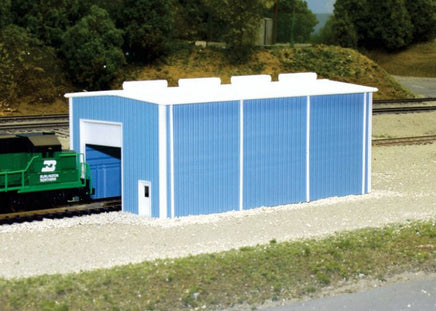 This kit is designed to be built 24 scale feet high. Side walls have cut lines for optional door openings. End walls have enginehouse doors and small door provided. Kit includes doors, roof top vents, and down spouts.