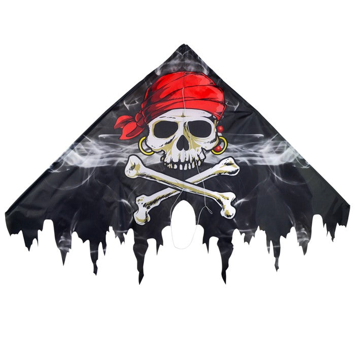 This classically designed 50" Smokin' Pirate Fringe Delta Kite is easy to fly and is striking in the sky. The fringe across the trailing edge complements the kite's pirate theme while adding stability. Deltas are fun and easy for the whole family!