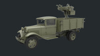 This is a MiniArt 35186 1:35 Soviet 1.5-Ton Cargo Truck with M4 Maxim AA Gun & Crew. Highly Detailed Model, 2 Variants Platform Boards, Doors, Car Hood, Platform Boards Can Be Posed Open or Closed, Accurate Engine, Clear Parts Included, Photo-Etched Parts Included, Decal Sheet For 10 Variants, Highly Detailed M-4 Maxim Aa Machine Gun Included, 2 Figures Are Included.
