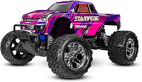 The Traxxas Stampede® Heavy Duty (HD) 1/10 Ready-To-Race® (RTR) 2WD Electric Monster Truck is the epitome of off-road excitement and durability. Renowned for its rugged performance, the Stampede has been upgraded with factory-installed Extreme Heavy Duty suspension components and a convenient clipless body system. With a top speed of over 30 mph and waterproof electronics, this beast is designed to tackle any terrain in all types of weather conditions.