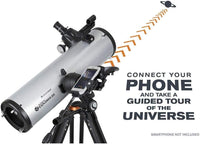 Celestron's StarSense Explorer DX 130 Reflector Telescope reinvents the traditional manual telescope by using your smartphone to analyze the night sky in real time. Perfect for beginners, the app features a user-friendly interface and detailed tutorials, acting as your personal tour guide. Say goodbye to complicated star charts and imprecise apps - with StarSense Explorer, finding celestial objects has never been easier or more accurate. Compatible with most modern smartphones, this telescope boasts a patent-pending Sky Recognition Technology and a high quality altazimuth mount with slow motion control. It's perfect for observing in both light polluted city locations and darker sites. In addition, the lightweight and portable telescope kit comes with everything you need to start observing immediately.