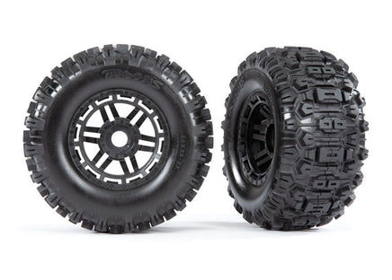 Black wheels, dual profile (2.8" outer, 3.6" inner), Sledgehammer tires, foam inserts) (2) (17mm splined)