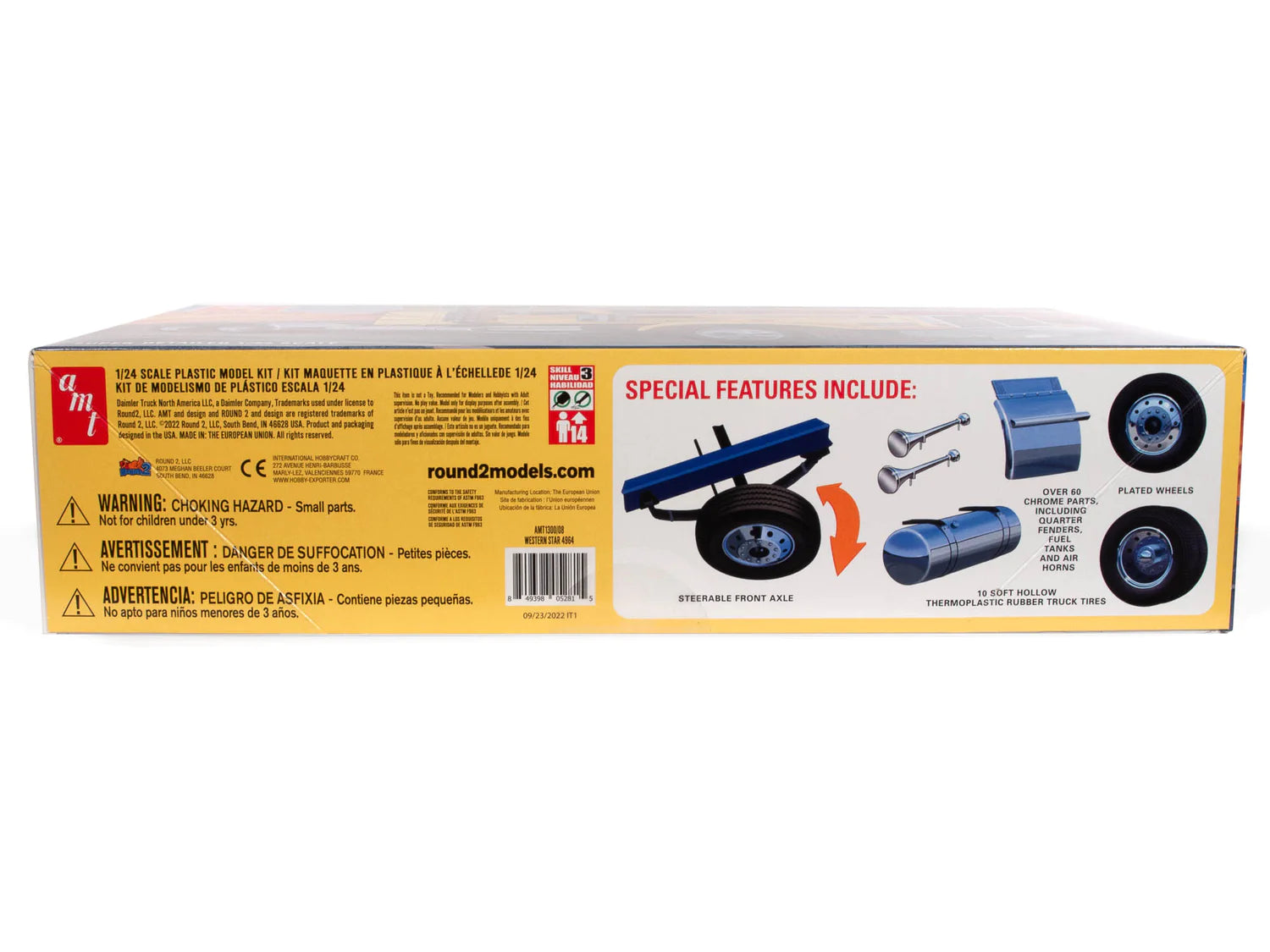 At 13 inches long, the Western Star 4964 builds big and strong with authentic features, including: 60+ chrome parts, sleeper, steerable front axle, NTC-400 Turbocharged Cummins diesel engine, tilting hood, dual chrome exhaust stacks, super-detailed interior, 10 thermoplastic rubber tires and more! Fully paintable, with ALL NEW water-slide decals and collectible vintage-style packaging.