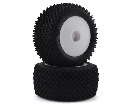 This is a pair of rear mounted white pin tires for Mini-T 2.0 by Losi.